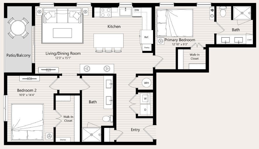 Apartment Model: A15From $2,0361 Bedroom, 1 Bath, 709 sq ftAvailable Now![]()