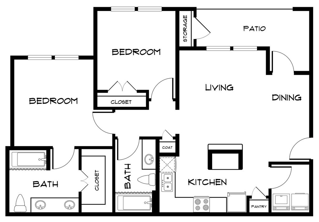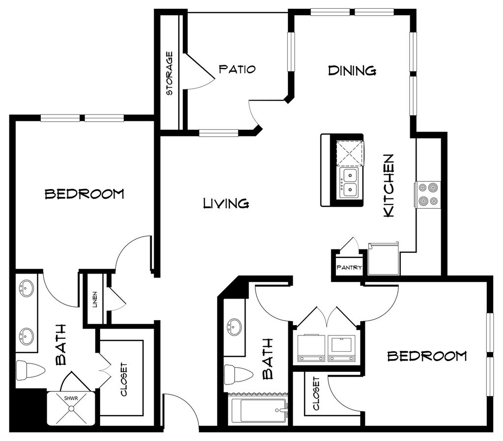 2 Beds, 2 Baths, 1184 sq ftAvailable NowLargest 2 BedroomThis is the largest 2 Bedroom at this PropertyModel Gallery