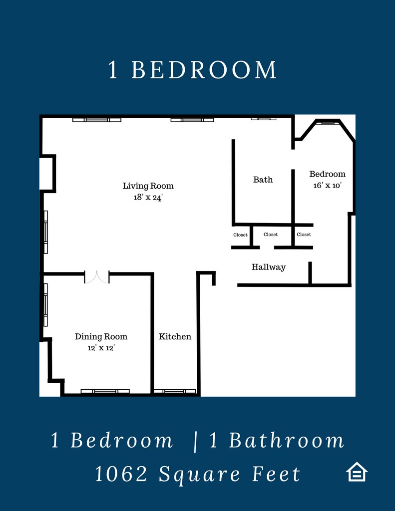 Apartment Model: 2 Bedroom 1 Bathroom$2,2102 Bedroom, 1 Bath, 1062 sq ftAvailable NowFloorplansPhotos![]()