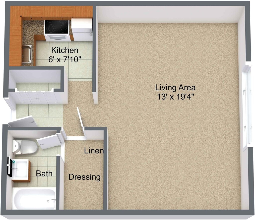 Studio, 1 Bath, 450 sq ftAvailable NowModel Gallery