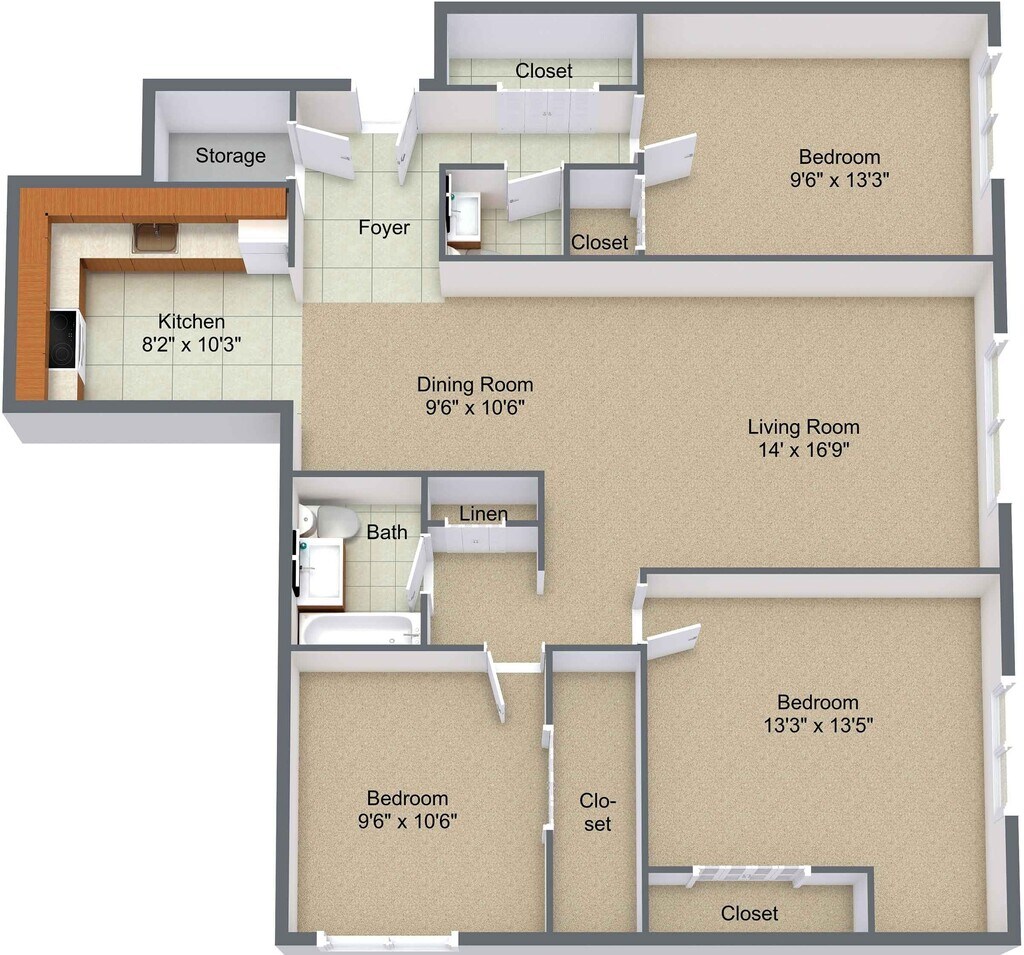3 Beds, 1.5 Baths, 1167 sq ftModel Gallery