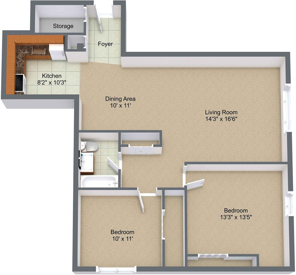 2 Beds, 1 Bath, 933 sq ftAvailable NowModel Gallery
