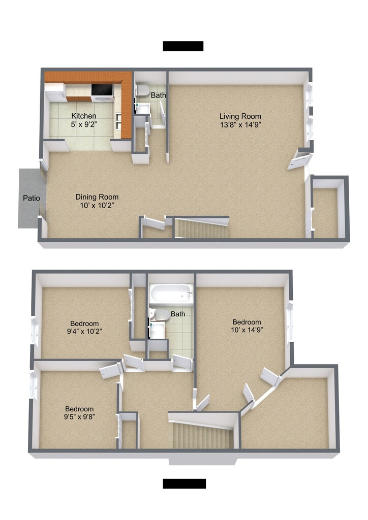 Apartment Model: 3x2 TH$2,7853 Bedroom, 1.5 Bath, 1779 sq ftAvailable Now![]()