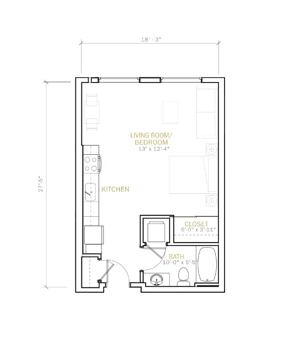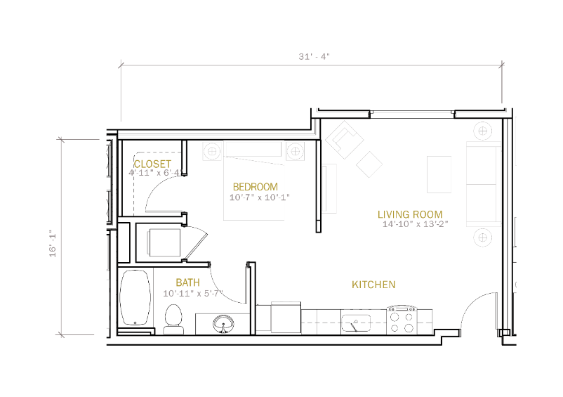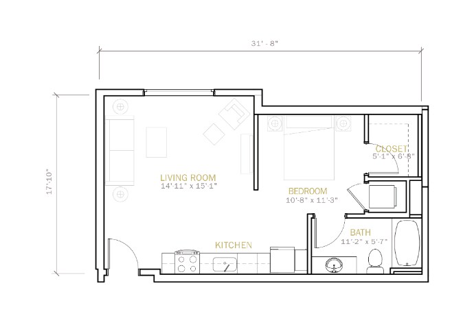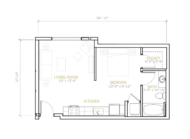 A5 - Floorplan 1 Apartment Unit: A211Apartment Model: A5$1,847Studio, 1 Bath, 580 sq ftAvailable NowFloorplan A1