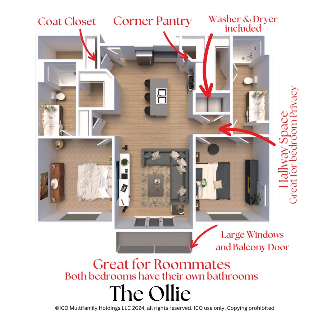 1 Bed, 1 Bath, 758 sq ftAvailable January 8, 2026Model Gallery