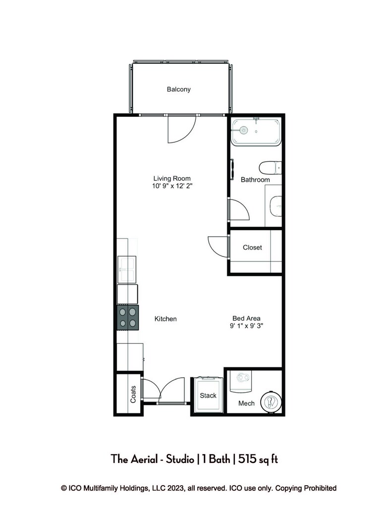 The Aerial Studio - Floorplan 2 Apartment Unit: A221Apartment Model: The Aerial Studio$1,199Studio, 1 Bath, 515 sq ftAvailable December 15, 2025The Aerial - Studio *Income Restricted
