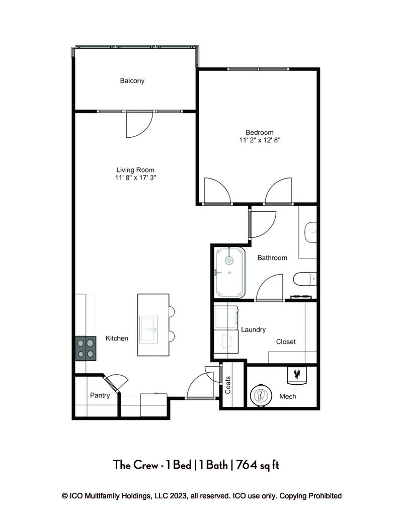 Apartment Model: The Crew - 1x1From $1,4291 Bedroom, 1 Bath, 764 sq ftAvailable NowFloorplansPhotos![]()