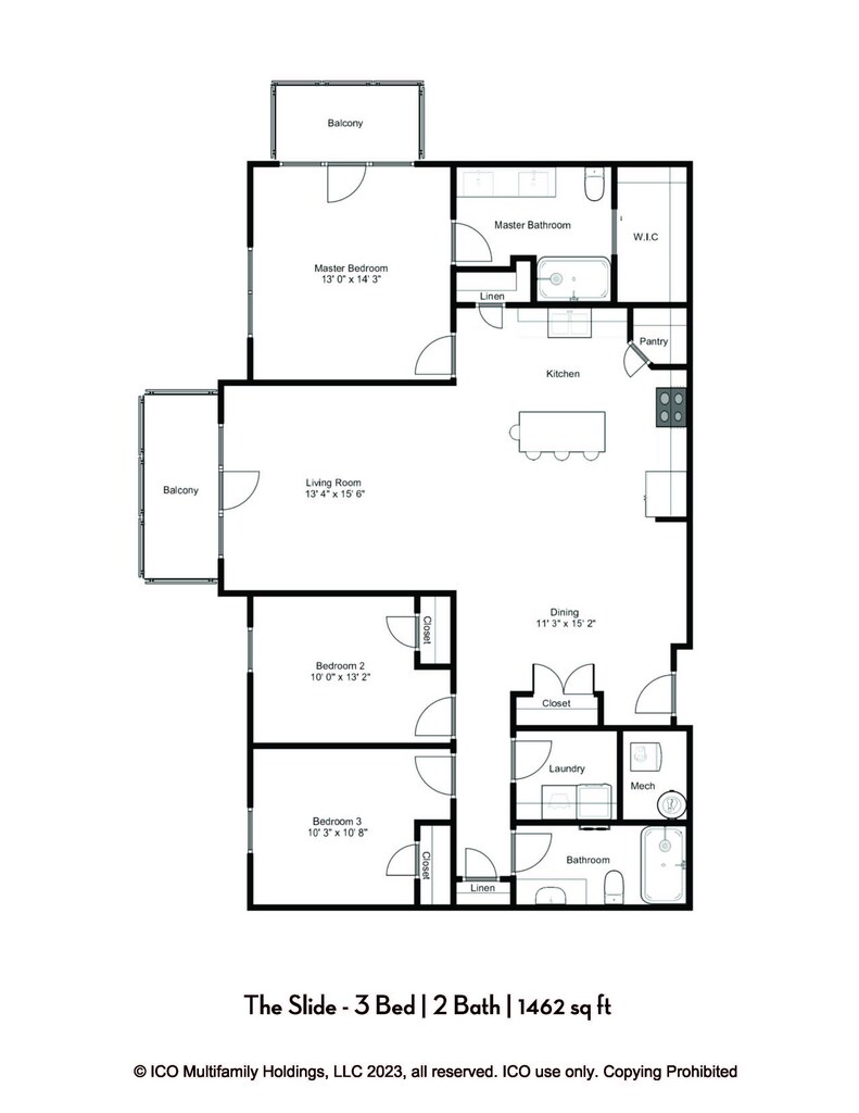 ICO Fort Union offers Studio to 3 Bedroom apartments starting from $1,199 and having 515–2,423 sq ft. Here is the current pricing and availability: