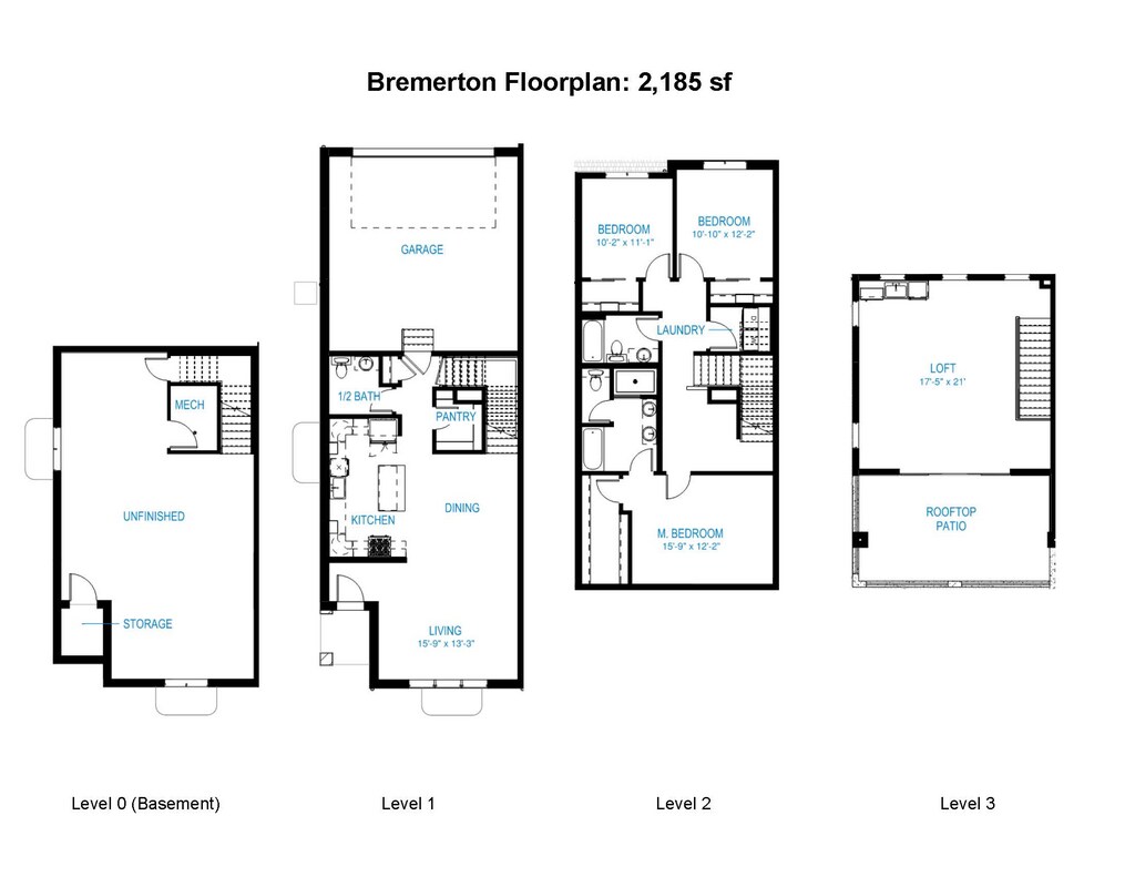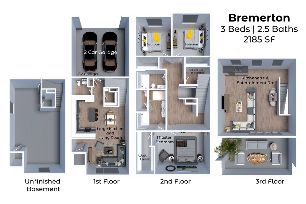 Olympia 3x2.5 TH - Floorplan 2 Bremerton 3x2.5 TH