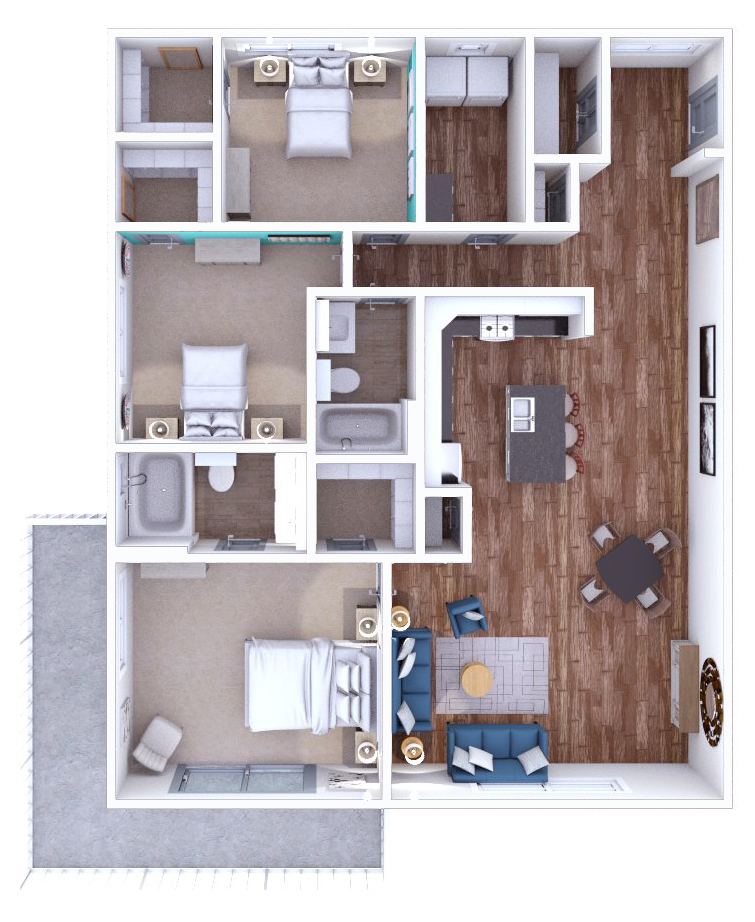 Apartment Model: Love 3x23 Bedroom, 2 Bath, 1483 sq ftAvailable NowFloorplansPhotos![]()