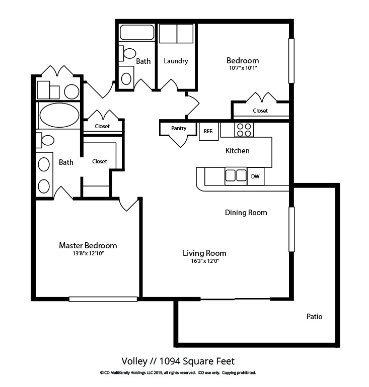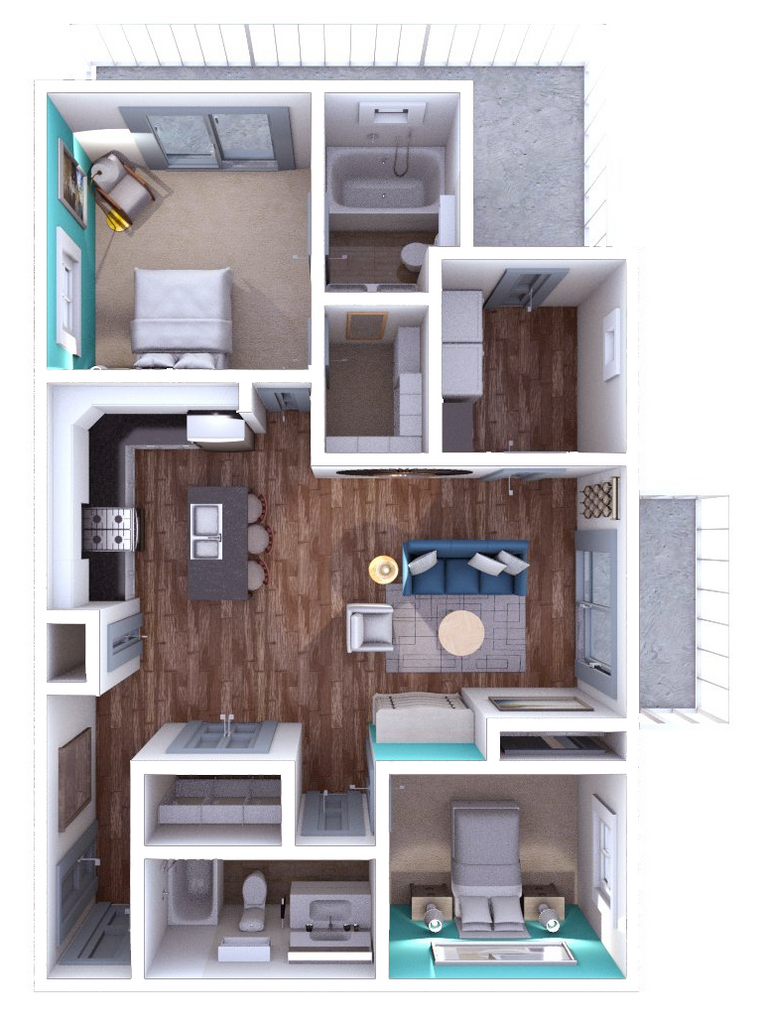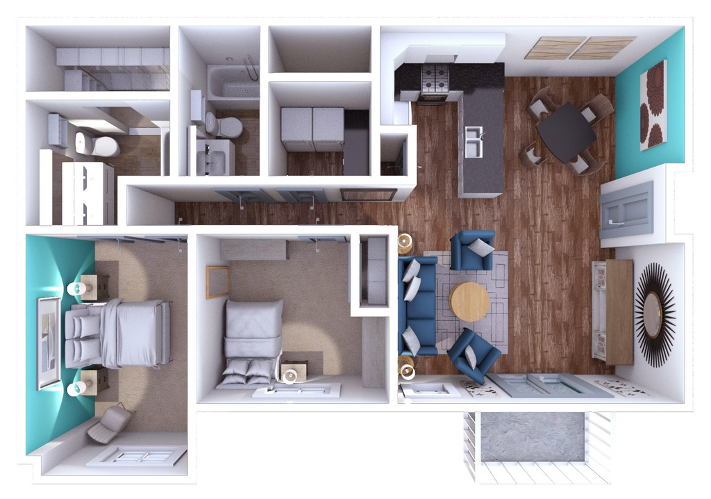 Ace 2x2 - Floorplan 2 Apartment Unit: B1-101Apartment Model: Ace 2x22 Bedroom, 2 Bath, 1054 sq ftAvailable NowVolley 2x2