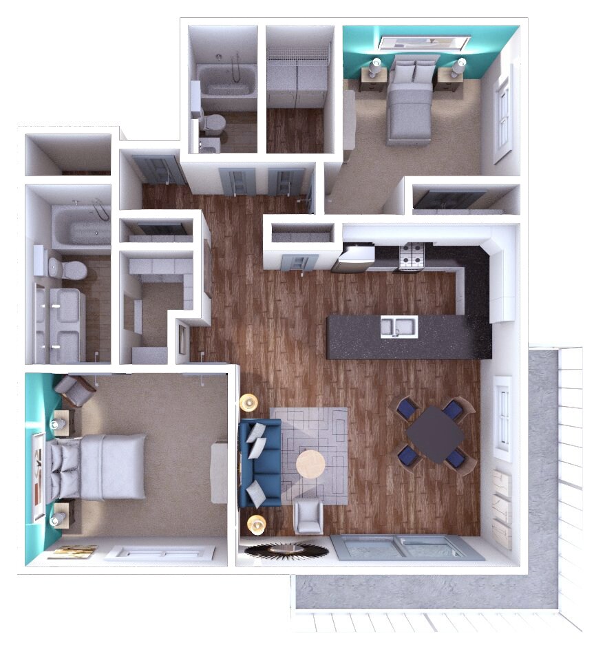 Apartment Model: Deuce 2x22 Bedroom, 2 Bath, 1132 sq ftUnavailableFloorplansPhotos![]()