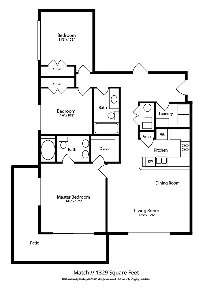 Apartment Model: Match 3x23 Bedroom, 2 Bath, 1329 sq ftUnavailableFloorplansPhotos![]()