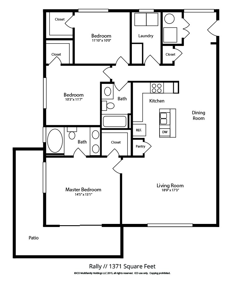 Apartment Model: Rally 3x23 Bedroom, 2 Bath, 1371 sq ftAvailable November 27, 2025FloorplansPhotos![]()