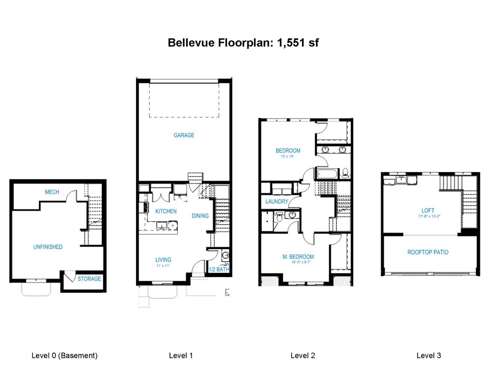 Bellevue 2x2.5 TH - Floorplan 2 3 Bedrooms