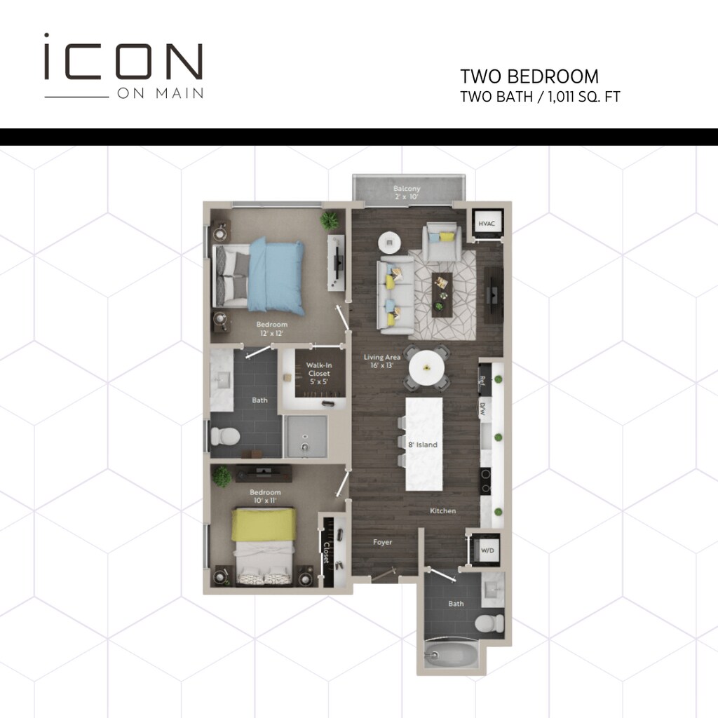 1 Bed, 2 Baths, 1011 sq ftLargest 1 BedroomThis is the largest 1 Bedroom at this PropertyModel Gallery