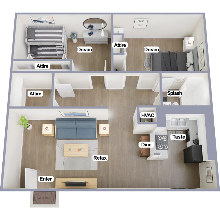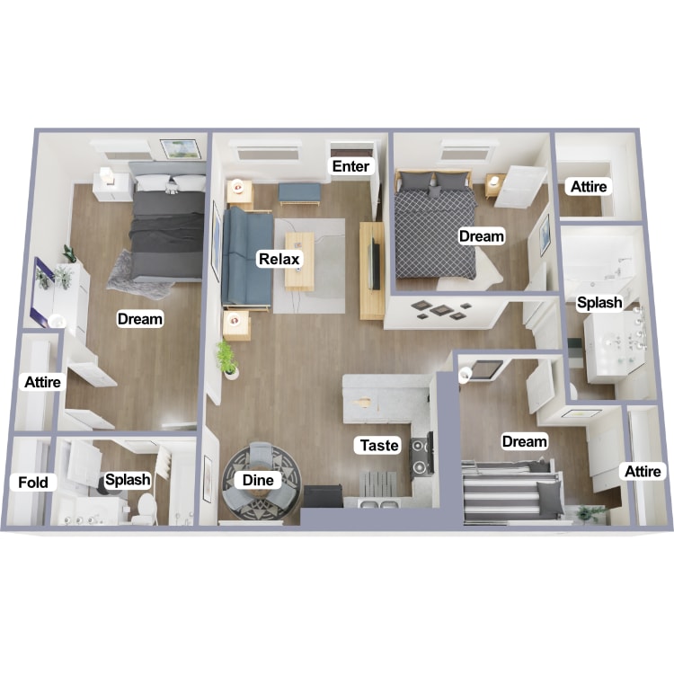 Apartment Model: 2 Bed 1 Bath - WoodFrom $1,3752 Bedroom, 1 Bath, 875 sq ftAvailable Now![]()