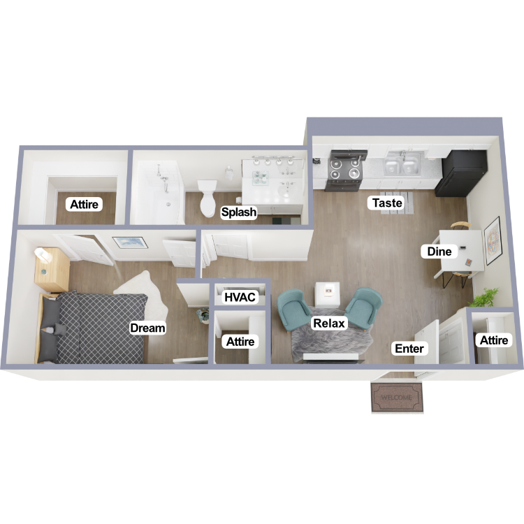 Studio A - Oasis - Floorplan 1 1 Bedroom