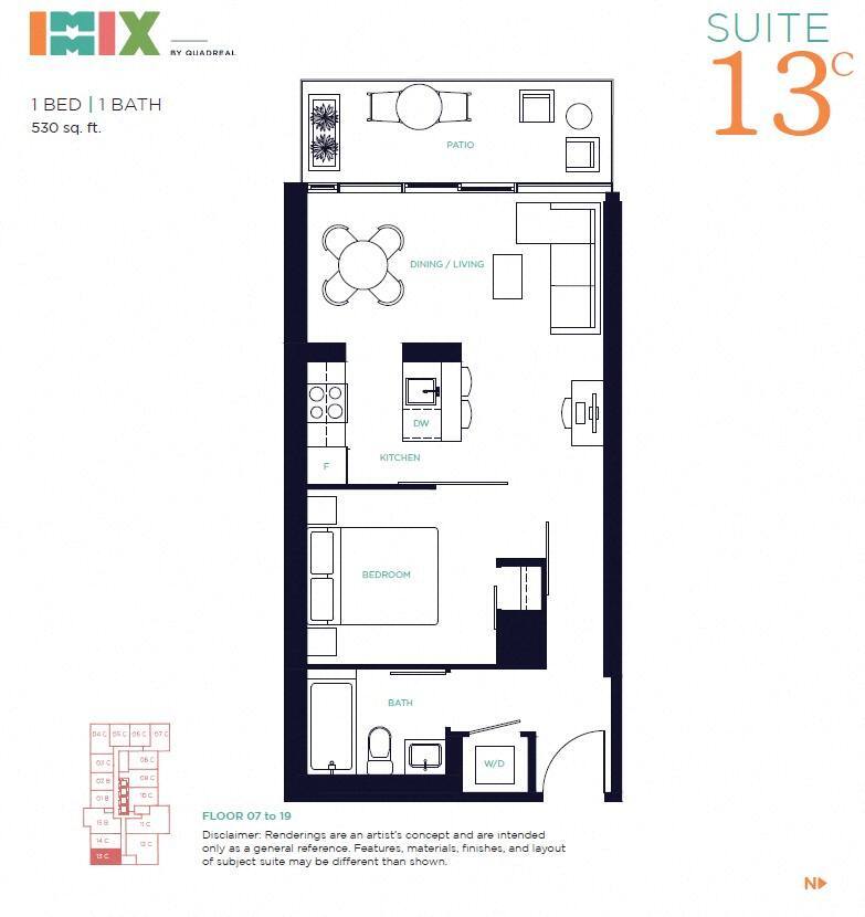 Apartment Model: 13C$2,3901 Bedroom, 1 Bath, 530 sq ftAvailable March 7, 2026![]()