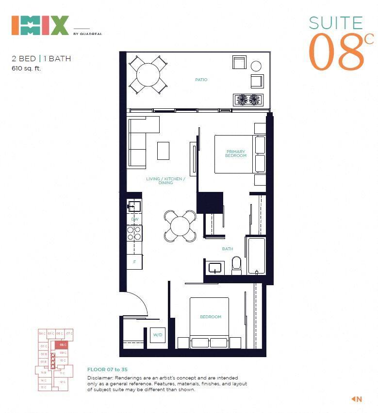 IMMIX offers 1 to 3 Bedroom apartments starting from $2,335 and having 444–1,161 sq ft. Here is the current pricing and availability: