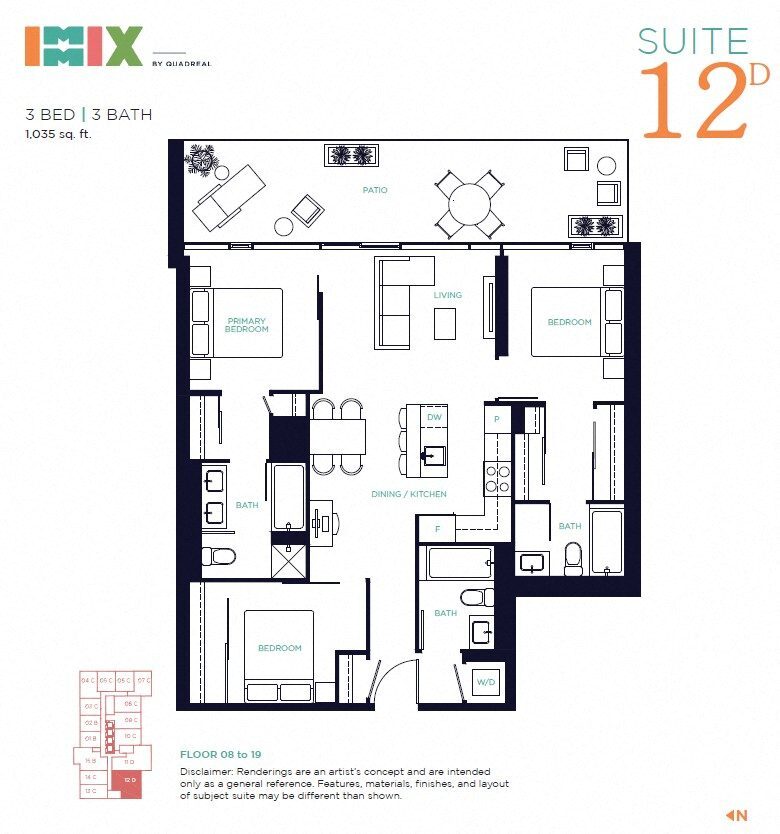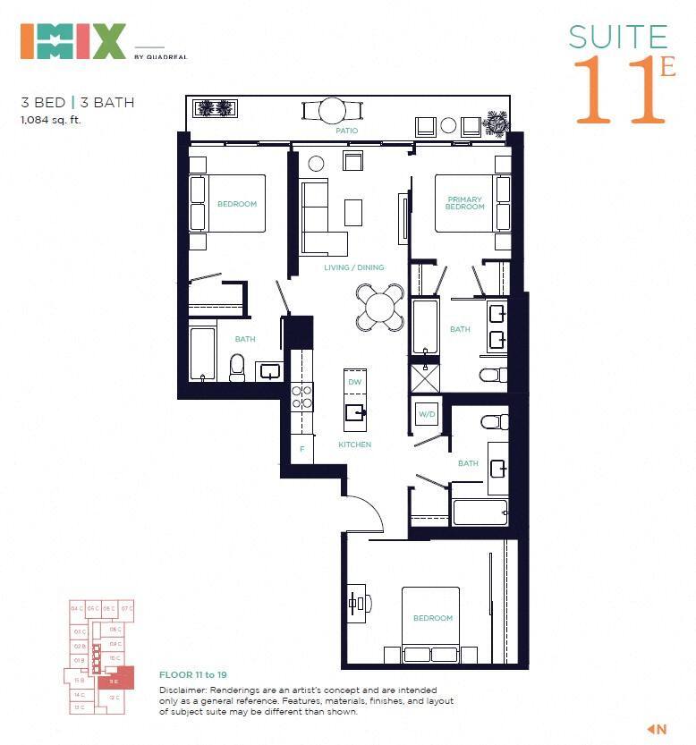IMMIX offers 1 to 3 Bedroom apartments starting from $2,365 and having 445–1,084 sq ft. Here is the current pricing and availability: