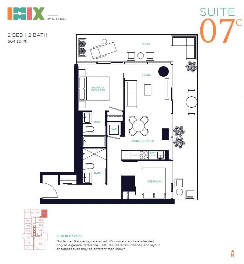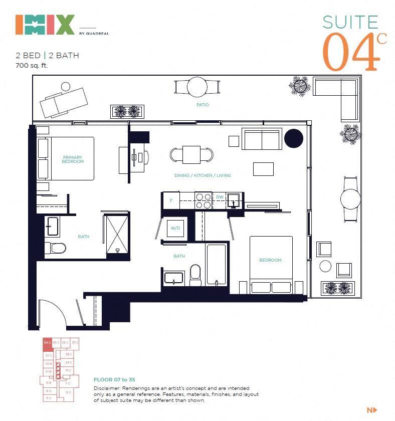 Apartment Model: 07C - 2 Bed 2 BathFrom $2,9152 Bedroom, 2 Bath, 664 sq ftAvailable Now![]()