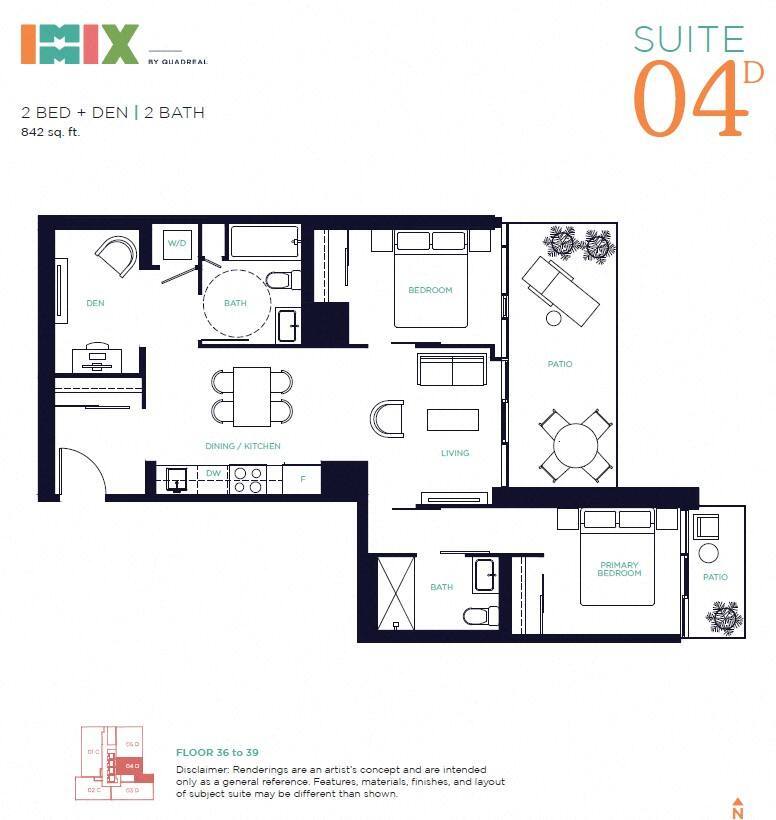 Apartment Model: 04D - 2 Bed + Den$3,6652 Bedroom, 2 Bath, 842 sq ftAvailable Now![]()