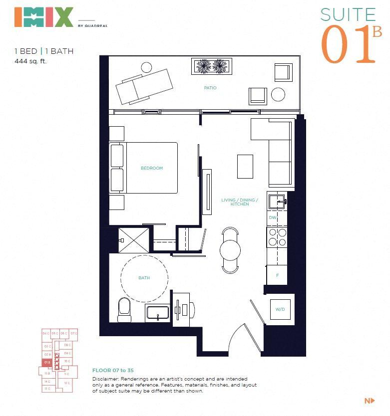 01 - 1 Bed 1 Bath - Floorplan 1 03 - 1 Bed 1 Bath