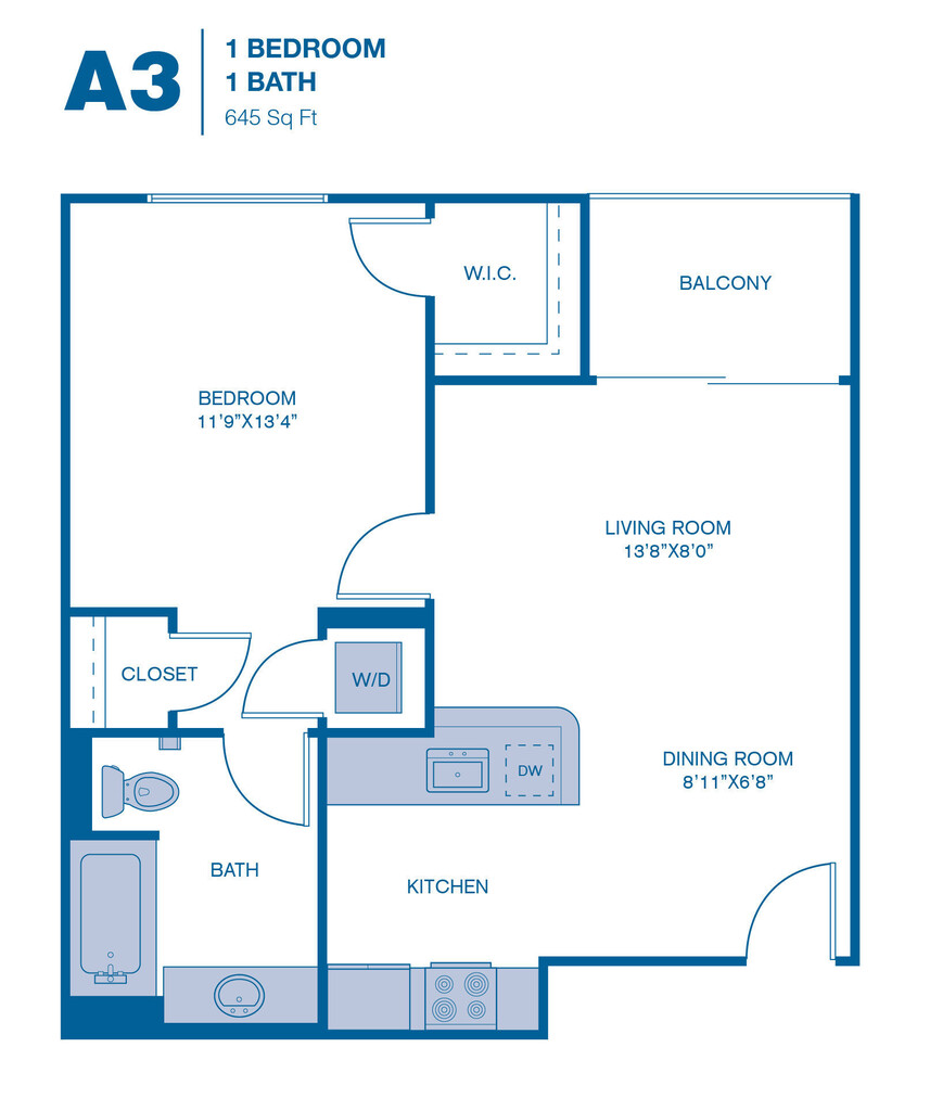 Apartment Model: A3Call For Rates1 Bedroom, 1 Bath, 645 sq ftUnavailable![]()