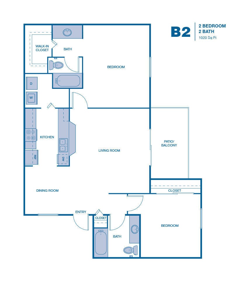 2 Beds, 2 Baths, 1020 sq ftModel Gallery