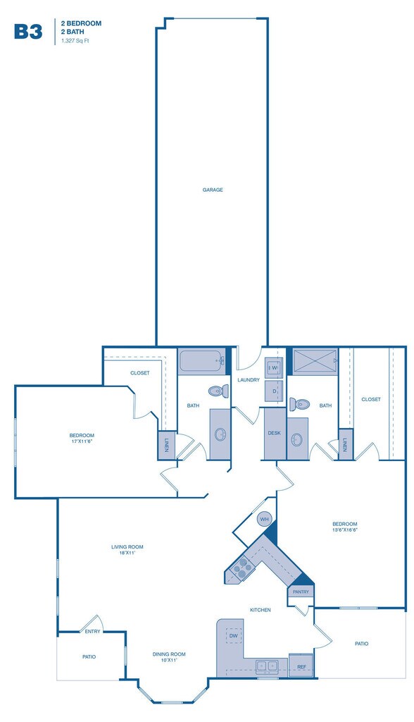 Apartment Model: B3Call For Rates2 Bedroom, 2 Bath, 1327 sq ftUnavailable![]()