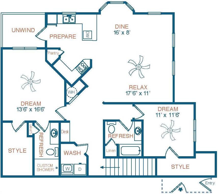 2 Beds, 2 Baths, 1458 sq ftLargest 2 BedroomThis is the largest 2 Bedroom at this PropertyModel Gallery