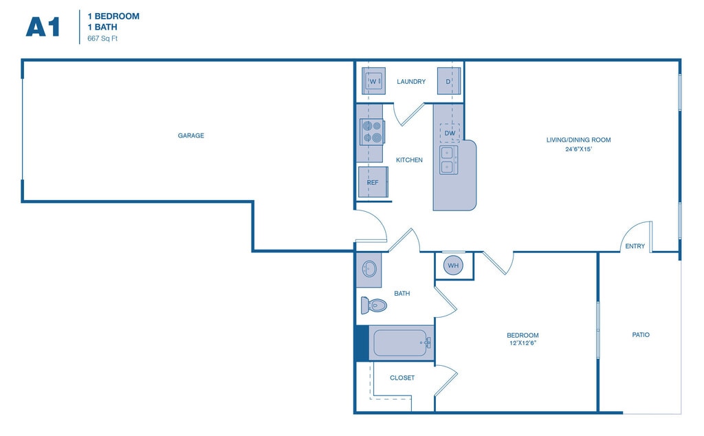 Apartment Model: A1$1,4651 Bedroom, 1 Bath, 667 sq ftAvailable Now![]()