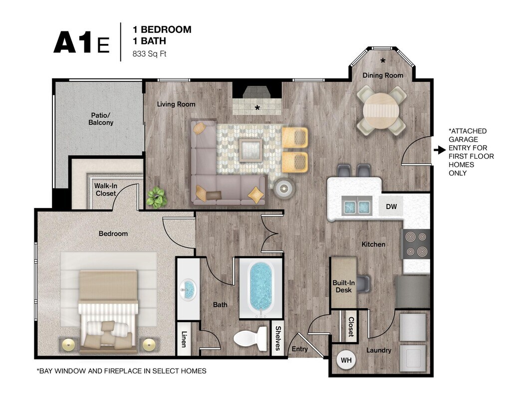 1 Bed, 1 Bath, 833 sq ftAvailable NowModel Gallery
