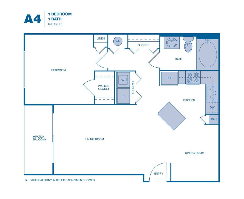 Apartment Model: A4From $1,4751 Bedroom, 1 Bath, 695 sq ftAvailable Now![]()