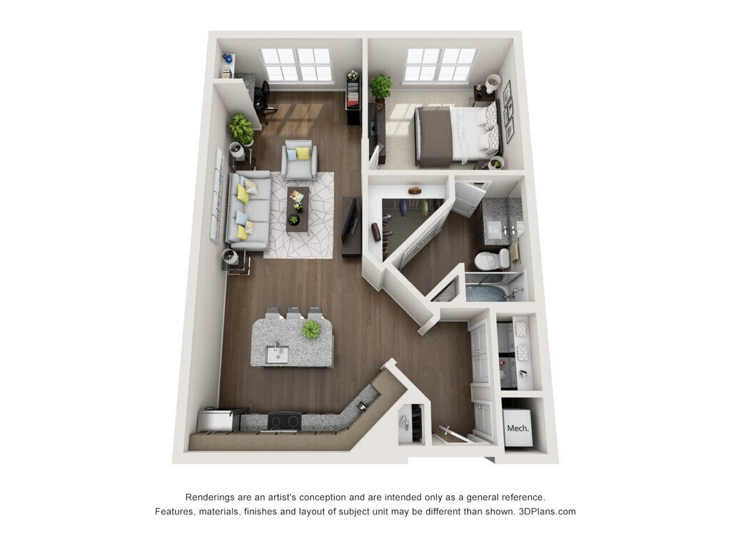 1 Bed, 1 Bath, 765 sq ftModel Gallery