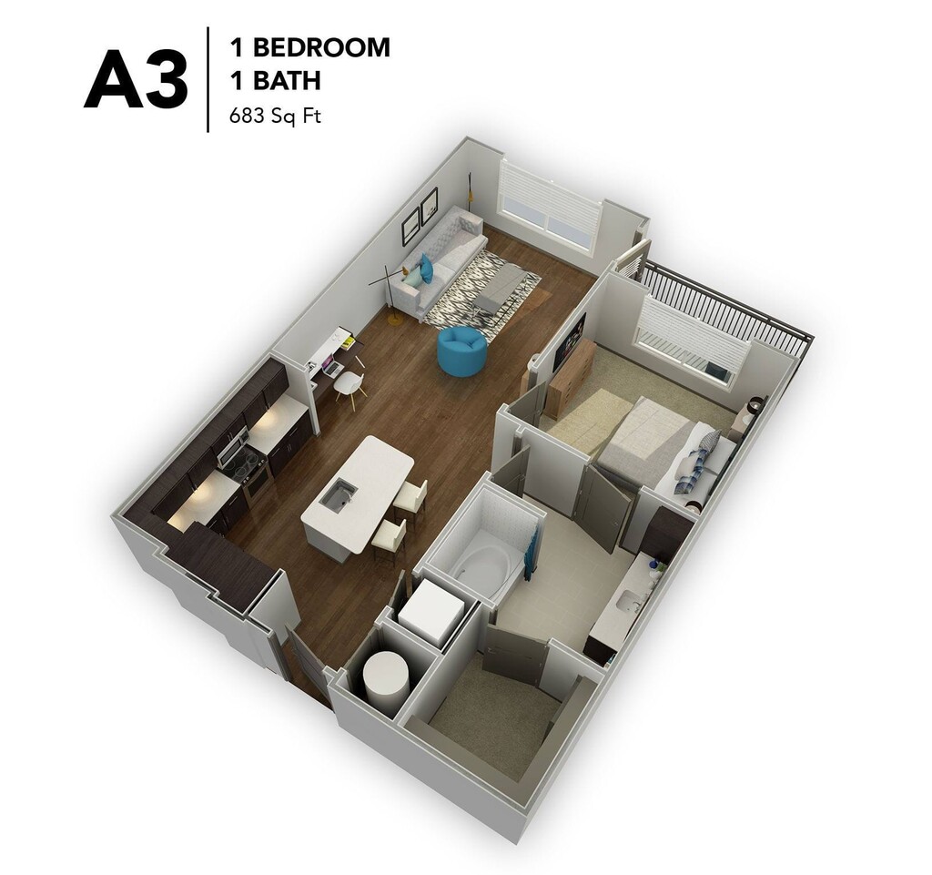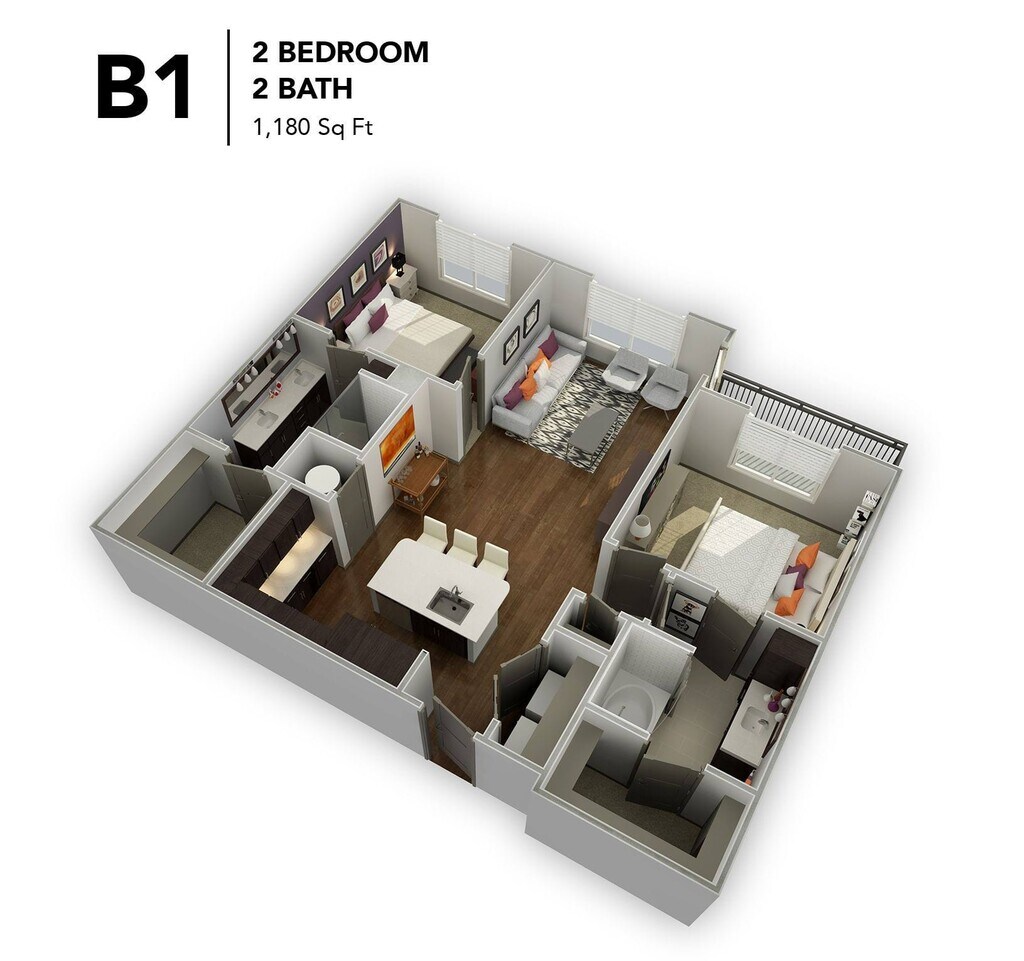 1 Bed, 1 Bath, 683-691 sq ftAvailable NowModel Gallery