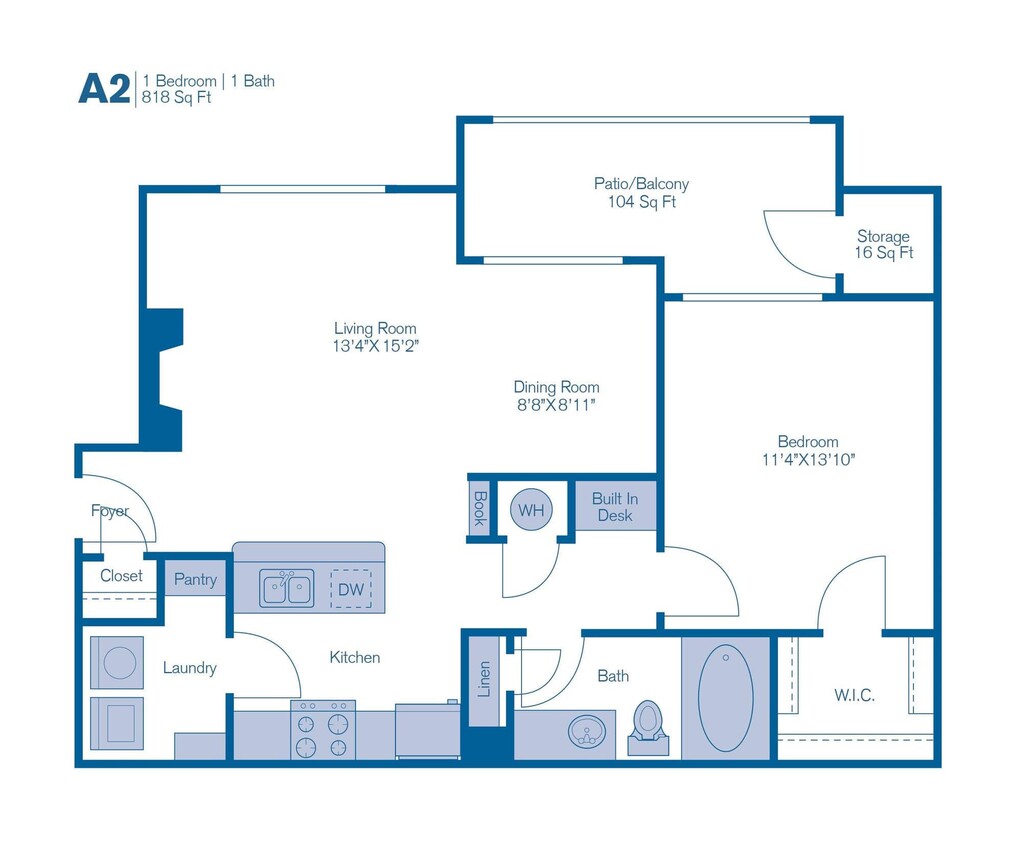 Apartment Model: A2From $1,5351 Bedroom, 1 Bath, 818 sq ftAvailable Now![]()
