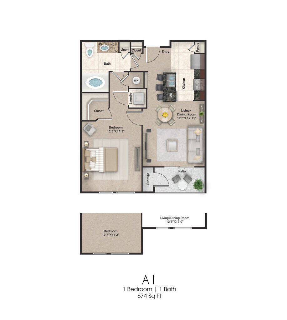 Studio, 1 Bath, 638 sq ftModel Gallery