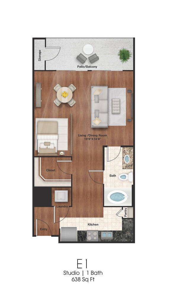 Apartment Model: E1Call For RatesStudio, 1 Bath, 638 sq ftUnavailable![]()