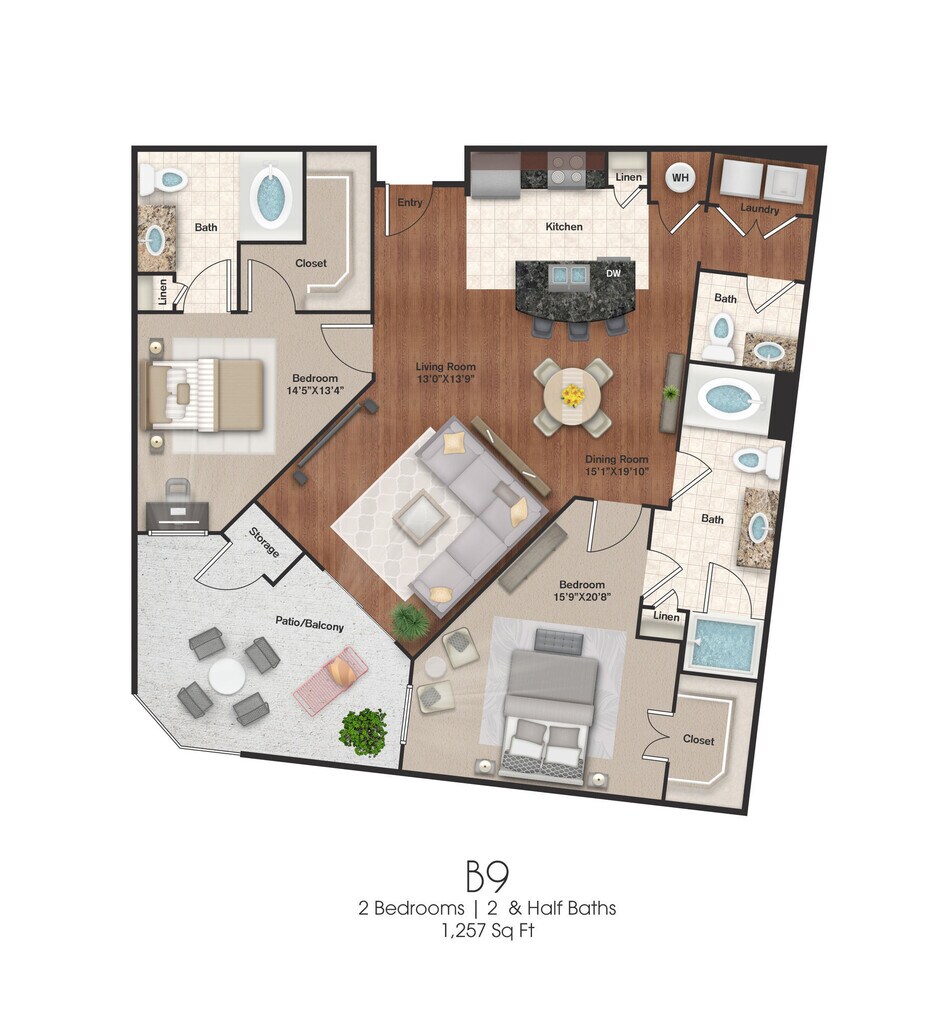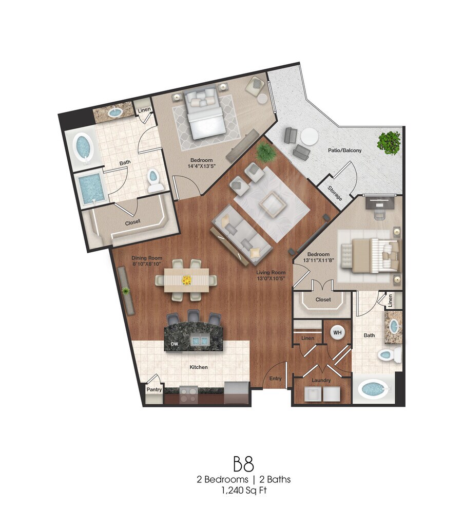1 Bed, 1 Bath, 869 sq ftAvailable NowModel Gallery