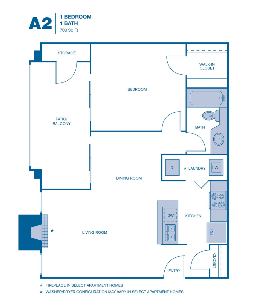 Apartment Model: A2From $2,3951 Bedroom, 1 Bath, 703 sq ftAvailable NowFloorplansPhotos![]()