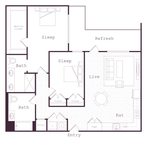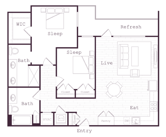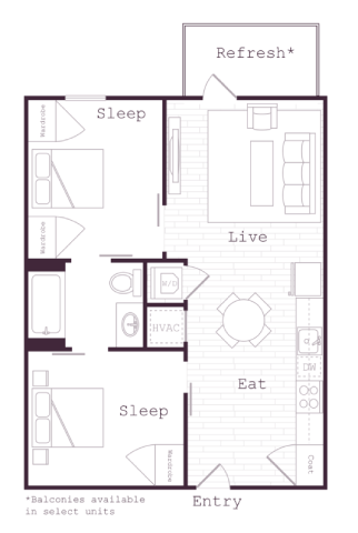 Apartment Model: a10eCall For Rates1 Bedroom, 1 Bath, 756 sq ftUnavailableFloor plans are artist's rendering. All dimensions are approximate. Actual product and specifications may vary in dimension or detail. Not all features are available in every rental home. Prices and availability are subject to change. Base rent is based on monthly frequency. Additional fees may apply, such as but not limited to package delivery, trash, water, amenities, etc. Deposits vary. Please see a representative for details.