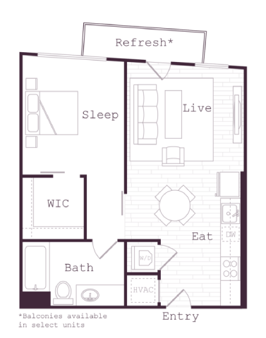 1 Bed, 1 Bath, 585 sq ftAvailable NowModel Gallery