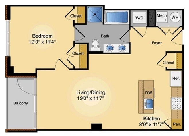 1H - Floorplan 1 Apartment Unit: 1010Apartment Model: 1H1 Bedroom, 1 Bath, 784 sq ftAvailable NowFloorplan 1C