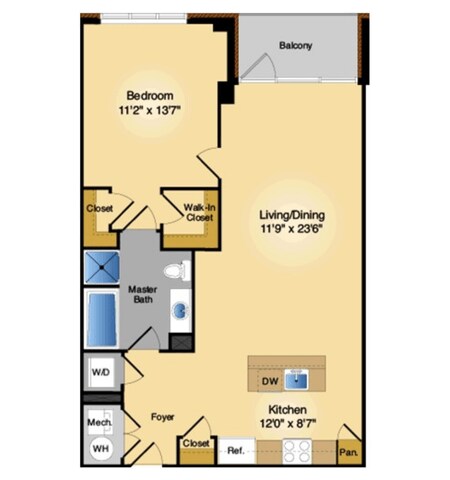 Apartment Model: 1D1 Bedroom, 1 Bath, 690 sq ftUnavailableFloor plans are artist's rendering. All dimensions are approximate. Actual product and specifications may vary in dimension or detail. Not all features are available in every rental home. Please see a representative for details.