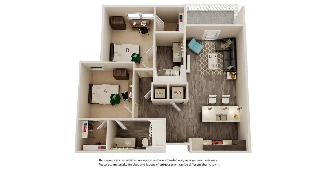 1 Bed, 1 Bath, 570 sq ftAvailable NowModel Gallery