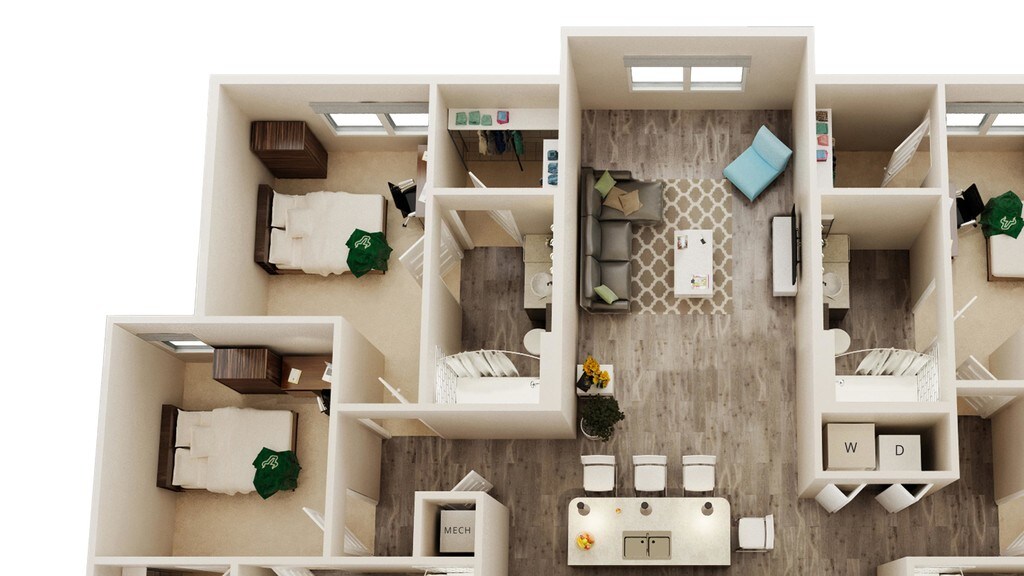 IQ student apartments offer a sleek and modern living experience near the University of South Florida, providing an ideal home for those who value style, convenience, and luxury. Enjoy state-of-the-art amenities like a bocce ball court, Italian garden, elevated sun deck, and a beach-entry saltwater pool with an island. Inside, the apartments feature stylish and modern elements, including Smart Suites with Bluetooth shower heads and memory foam mattresses. Elevate your student living - choose IQ in Tampa for a sophisticated and vibrant lifestyle.