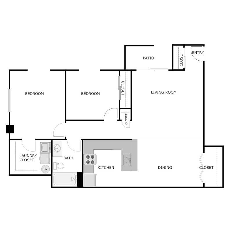2 Beds, 1 Bath, 1200 sq ftAvailable Dec 1Model Gallery