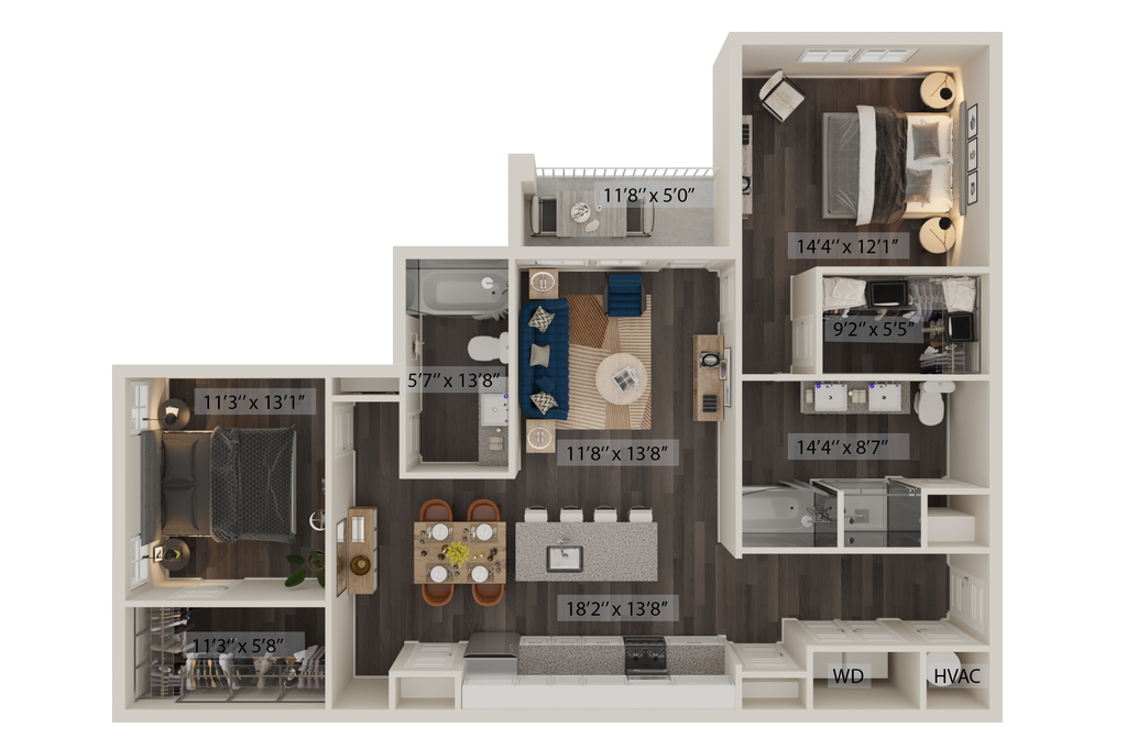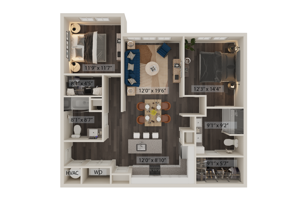 2 Beds, 2 Baths, 1208 sq ftAvailable NowModel Gallery